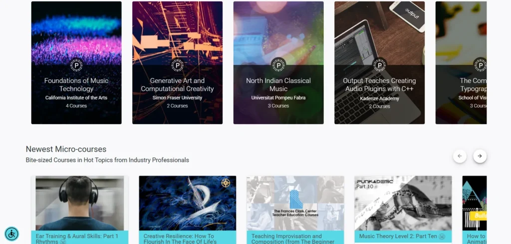 For example, if you take a music production course, you’ll probably need to create and upload a track for feedback. If you take a design course, you might have to submit a portfolio piece. The content can be detailed, covering topics like digital synthesis, machine learning, or creative programming.